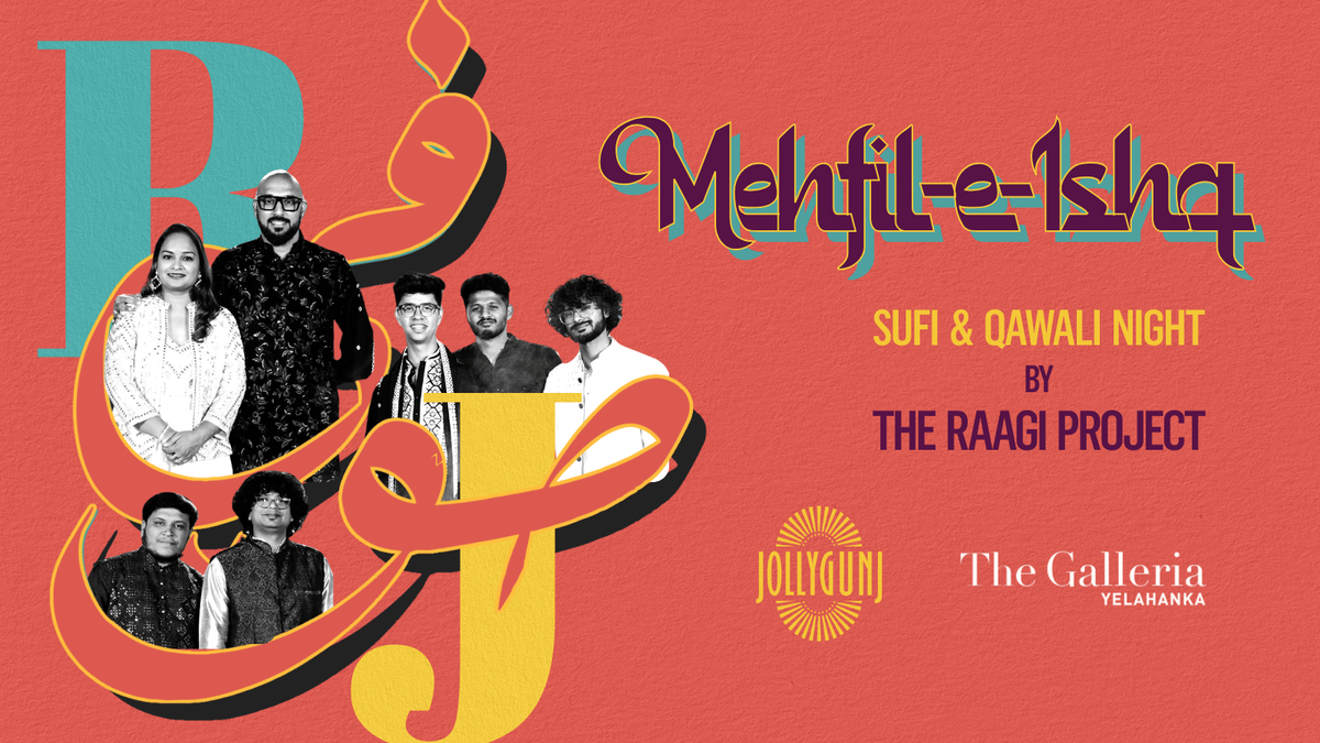 Immerse yourself in an evening of soulful Sufi melodies and powerful Qawali as The Raagi Project performs live at Jollygunj, Galleria, Yelahanka on 28th Feb 2026. Join us for a night of timeless music, great company, and unforgettable vibes. Limited entries.