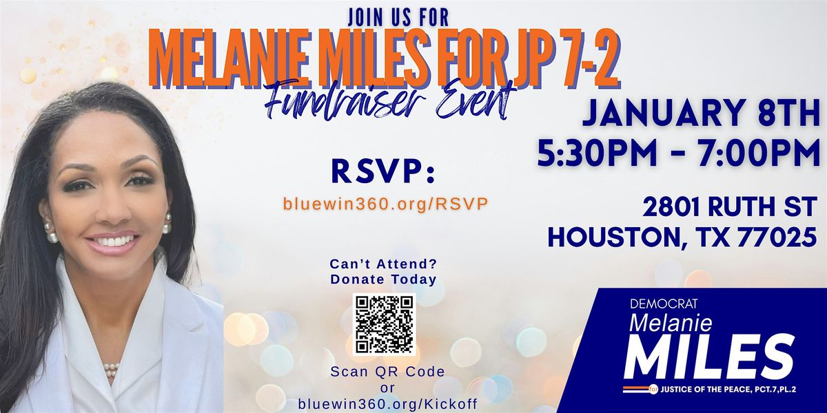 Get ready to come support a incredible campaign with Melanie Miles as she runs for Justice of the Peace, Precinct 7, Place 2! This will be a fun, casual gathering to connect, celebrate, and show your support. π