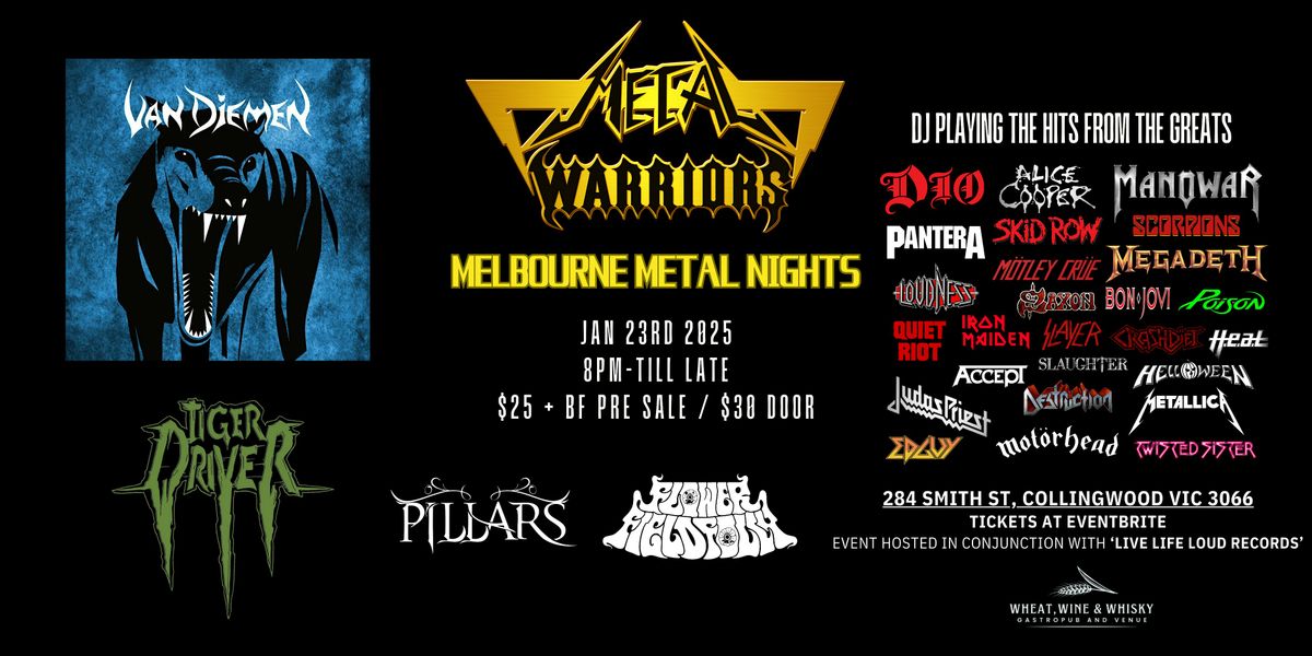 MELBOURNE METAL NIGHTS vol 6 is coming! From Tasmania - we got VAN DIEMEN with support from Tiger Driver, Pillars and Flower Field FollyAbout this Event