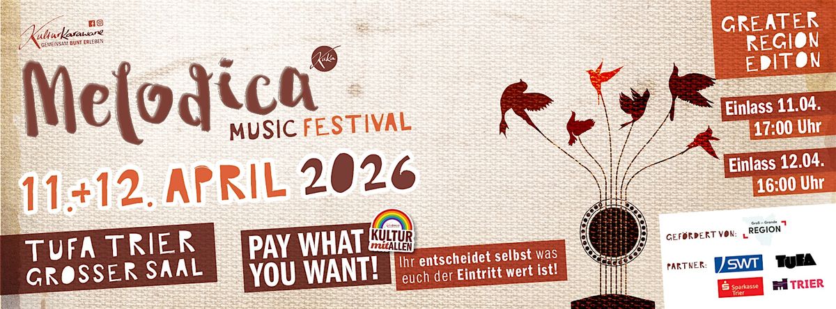 2026 schlagen wir ein neues Kapitel auf – in der TUFA Trier. Mit Wohnzimmeratmosphäre, magischem Licht und ganz viel Liebe zur Musik bleibt das Melodica-Gefühl erhalten. Draußen lädt unser „Flying Grass Carpet“ zum Entspannen und Begegnen ein.