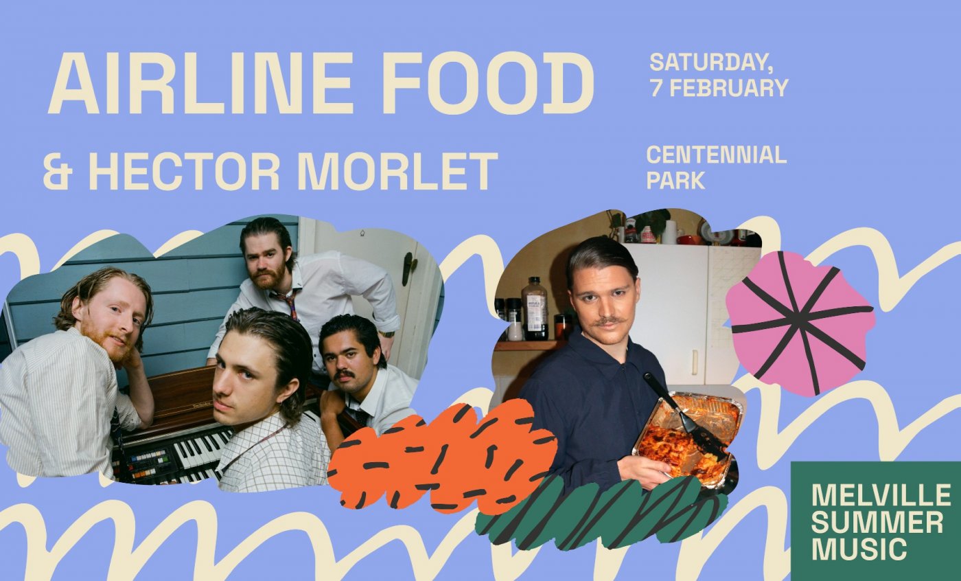 Join us at Centennial Park for a vibrant night with Airline Food, a tasty psych‑rock/synth‑pop four‑piece, and Perth chameleon Hector Morlet, blending kaleidoscopic pop, lo‑fi textures and grooving bass lines.