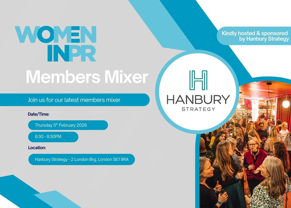 Join us for an evening of connection and conversation at the Women in PR Members Mixer, generously hosted by Hanbury Strategy.