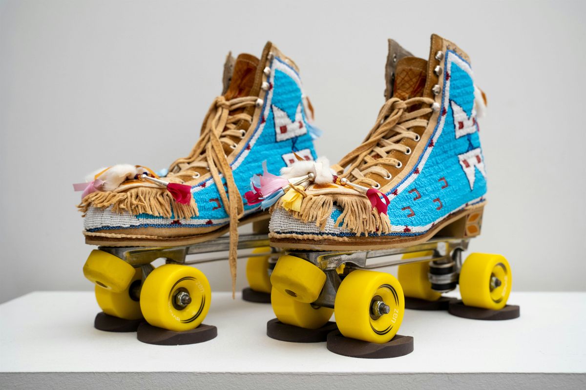 516 ARTS also presents a solo show from multidisciplinary artist Chaz John’s (Mississippi Band Choctaw). His ongoing research-based practice into the ancient Mississippian civilization of Cahokia is articulated in Redhorn II, an homage to ancestral legacies and cultural traditions. Materials with historical roots are utilized – bronze, copper, metal and wood – alongside stock car parts. The exhibition reflects upon Chaz’s personal experiences and upbringing in the midwest by juxtaposing the culture of dirt track racing alongside Cahokian hierarchical social systems. In both cases, he remarks humorously upon the notion of “spectacle” and draws parallels to the rise and fall of modern and historical societies alike.