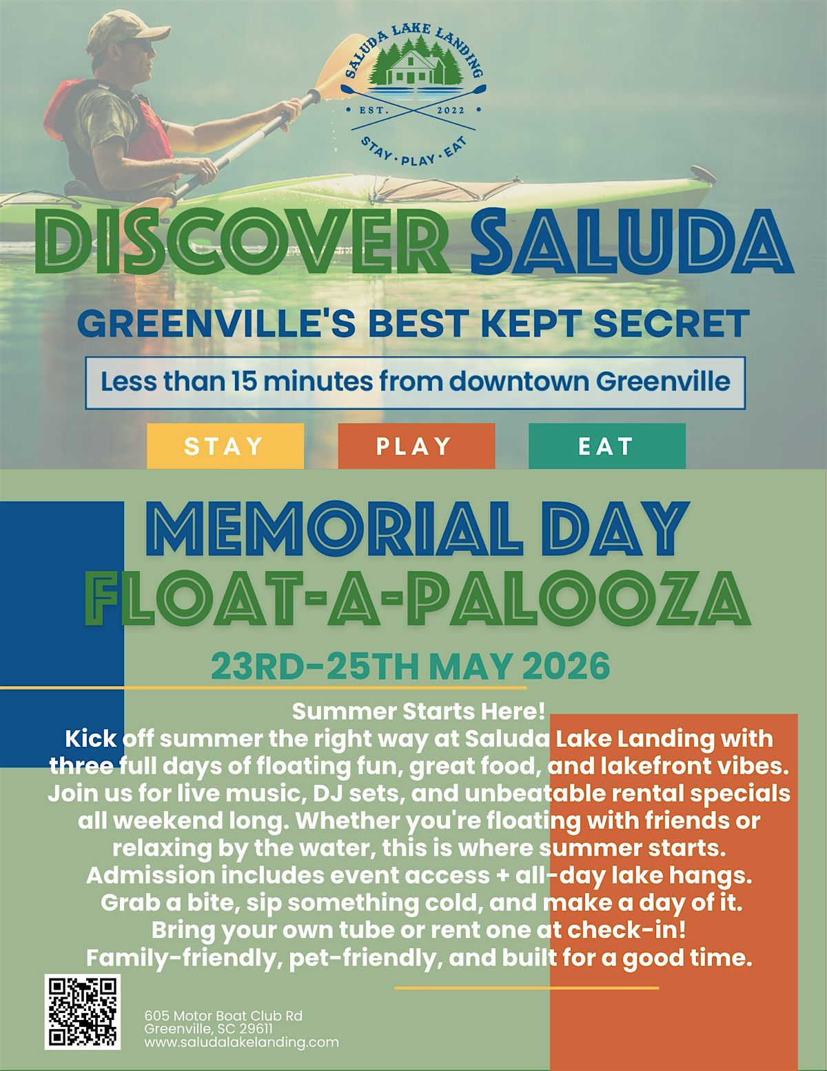 Kick off Memorial Day weekend at Saluda Lake Landing with Float-A-Palooza — three days of floating, music, drinks, and nonstop lake vibes just minutes from downtown Greenville.