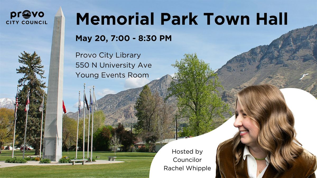 Councilor Rachel Whipple is hosting a town hall entirely about Memorial Park, and all Provo residents are invited. Come talk with elected officials and city staff about your concerns, and share ideas to improve the park (like new memorials!).
