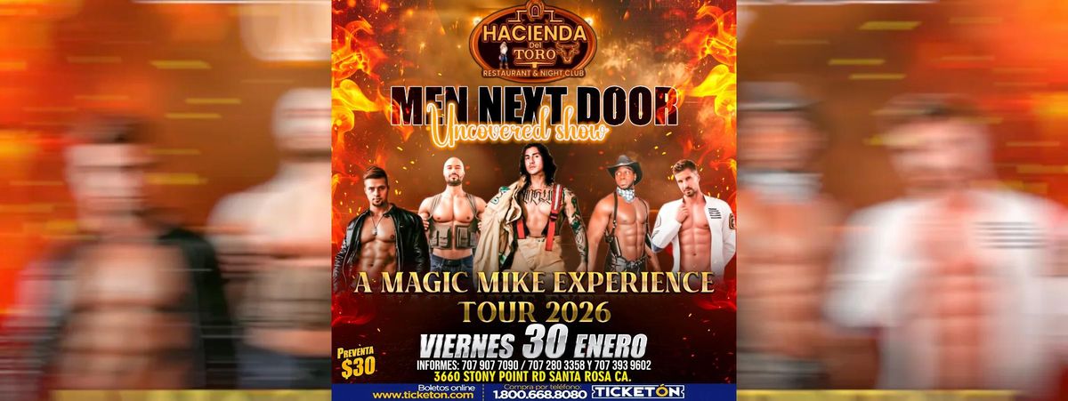 **Attend MEN NEXT DOOR UNCOVERED SHOW at La Hacienda del Toro, Santa Rosa, CA, United States** Join us for MEN NEXT DOOR UNCOVERED SHOW. It's going to be a fun and relaxed event with great music and good company. A perfect way to spend your evening. **Event Details:** * **Location:** La Hacienda del Toro, Santa Rosa, CA, United States Register now to secure your spot at this landmark event. #MENNEXTDOORUNCOVEREDSHOW #event #exciting #Santa RosaEvents #CAEvents