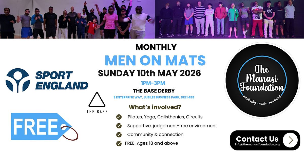 Join us for Men on Mats, a unique wellness experience designed to help men move, connect and thrive. This Sport England X The Manasi Foundation initiative brings together expert instructors and a safe community space for physical activity, mental wellbeing, and brotherhood.