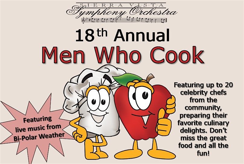 Come join us for a fun-filled evening of delicious food prepared by talented men in our community. This event is a great opportunity to taste a variety of dishes and mingle with friends and neighbors. Men Who Cook features up to 20 celebrity chefs from the community, preparing their favorite culinary delights. Featuring live music by Bi-Polar Weather! We will have alcohol available for purchase, a silent auction, and raffles. Don’t miss the great food and all the fun! Keep your ticket stub after check-in for a chance to win free prizes!