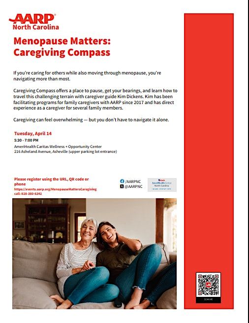 Please register using the URL, QR code or phone https://events.aarp.org/MenopauseMattersCaregiving
