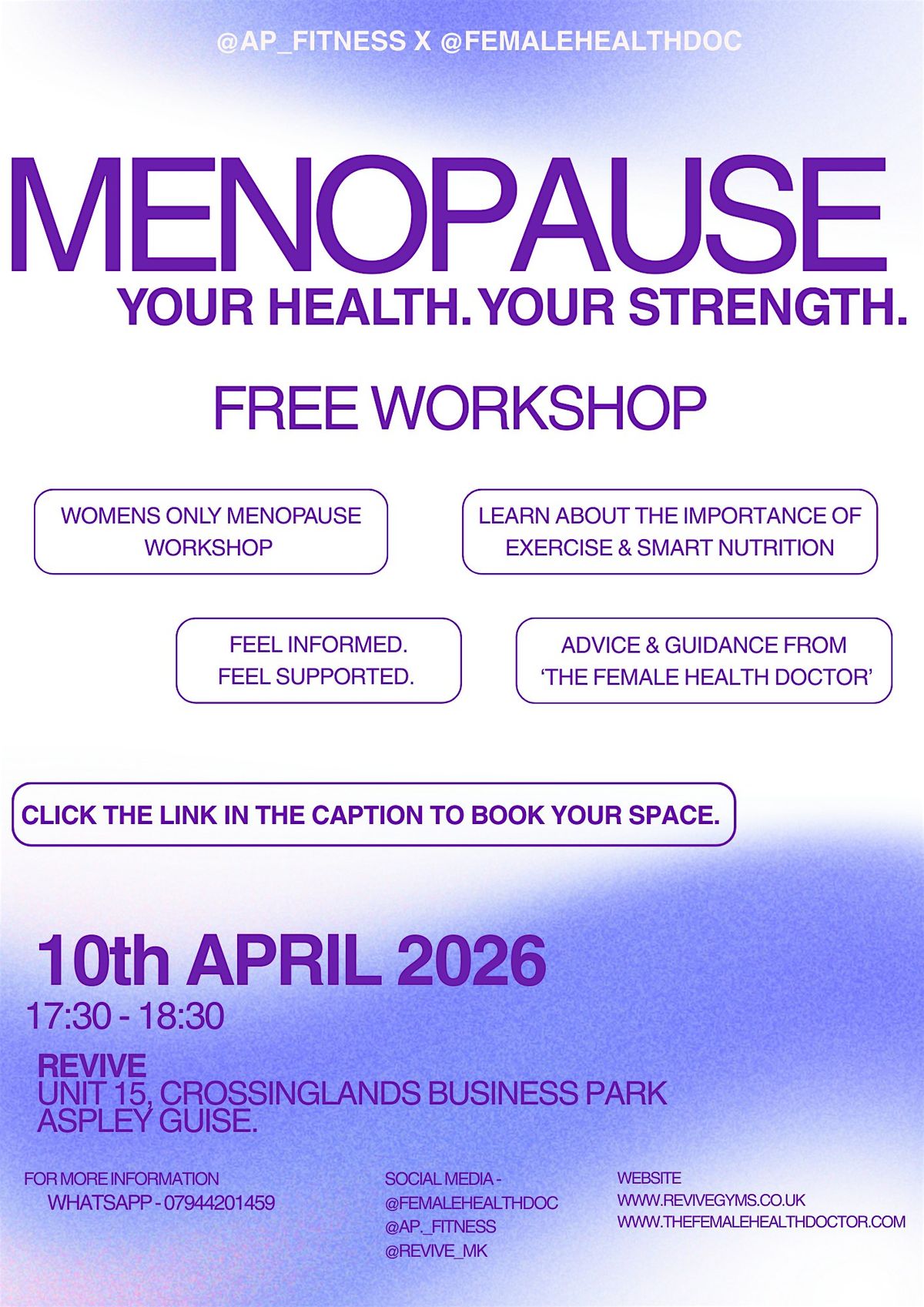 Join our free menopause workshop, hosted by a personal trainer & a female health doctor.