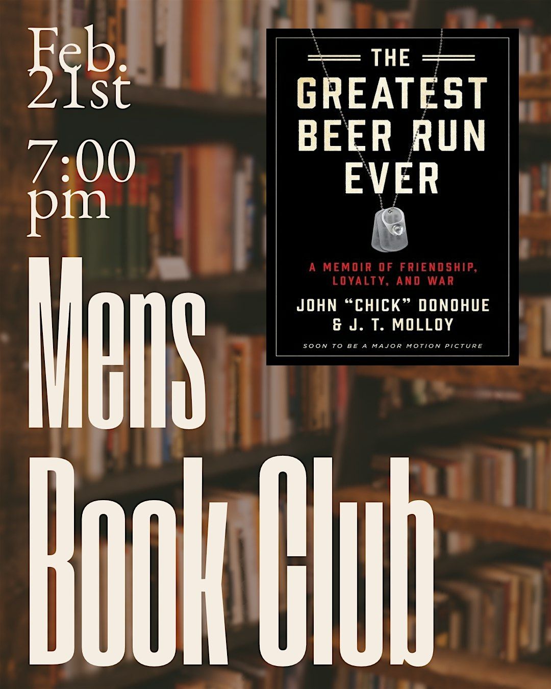 Join us for February’s Men’s Book Club as we read The Greatest Beer Run Ever by John “Chick” Donohue and J. T. Molloy.
