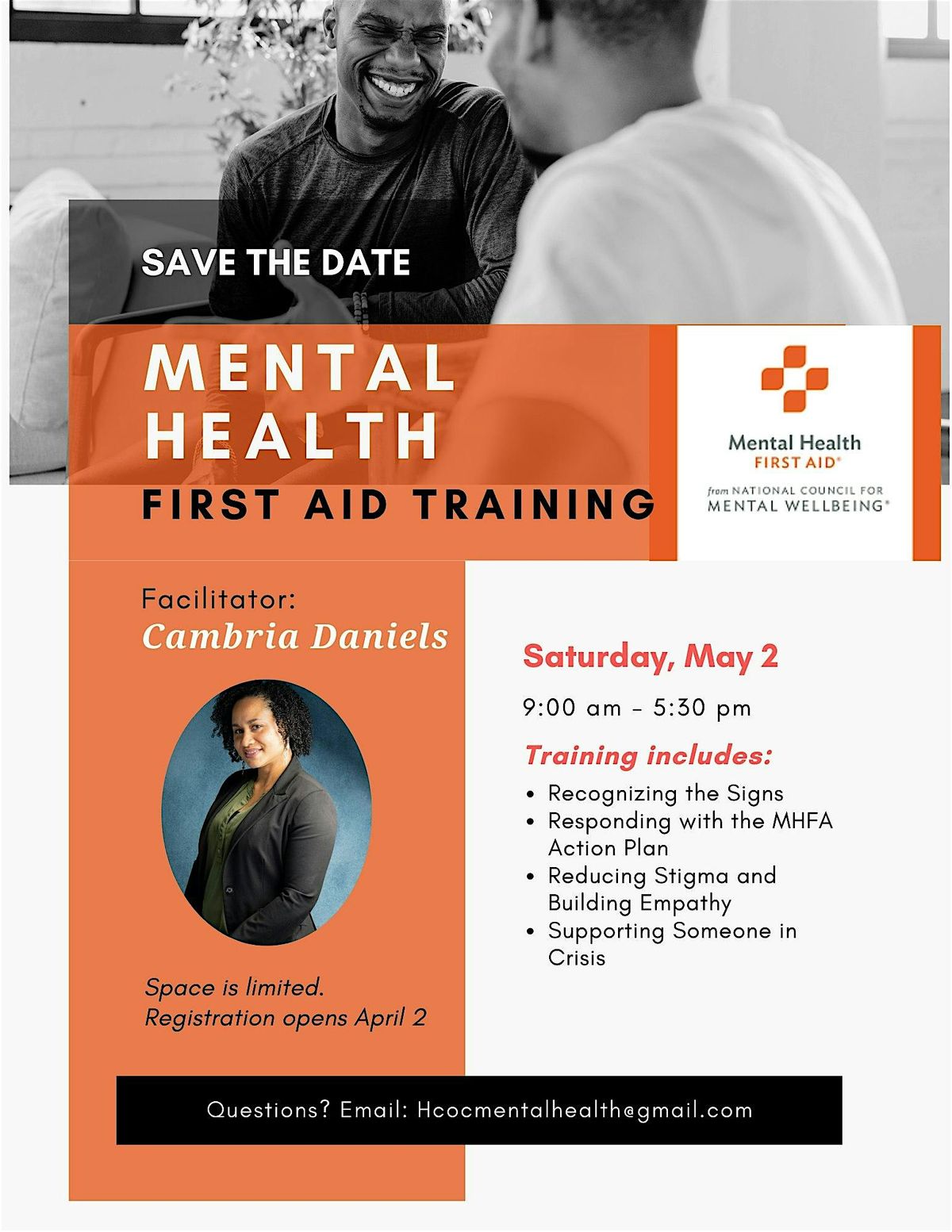 Join us for an in-person session where you'll learn how to recognize and respond to mental health challenges while deepening your awareness of how mental health impacts our communities. We welcome the public into a safe, restorative space to learn, build awareness, and gain meaningful skills. This is your opportunity to grow in a supportive environment and better understand the importance of mental health education. Whether you want to support friends, family, or coworkers, this training will equip you with the knowledge and confidence to support and educate others to assist in making a lasting, meaningful impact in your community.