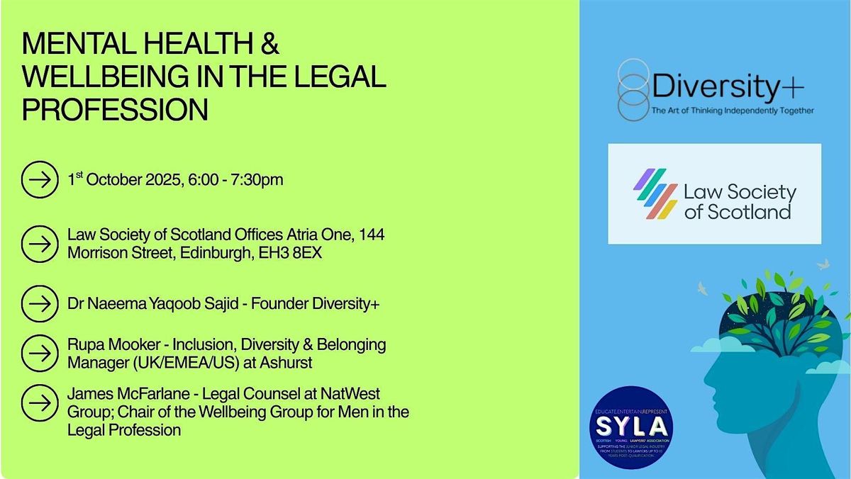 The Scottish Young Lawyers’ Association (SYLA) invites you to an open and supportive conversation about mental health and wellbeing in the legal profession.