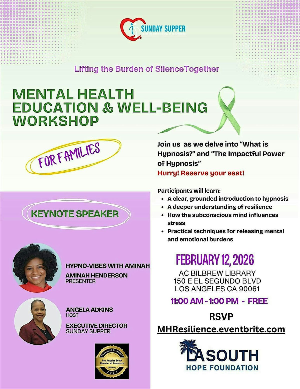 Join us for our Mental Health First-Aid for Families Workshop, where we cover a range of vital topics on mental health. Through these educational sessions, you will learn about prevention, recognize warning signs, and gain the tools to effectively interact, engage, and empower loved ones living with mental health conditions. We invite you to join us and deepen your understanding of these crucial topics.