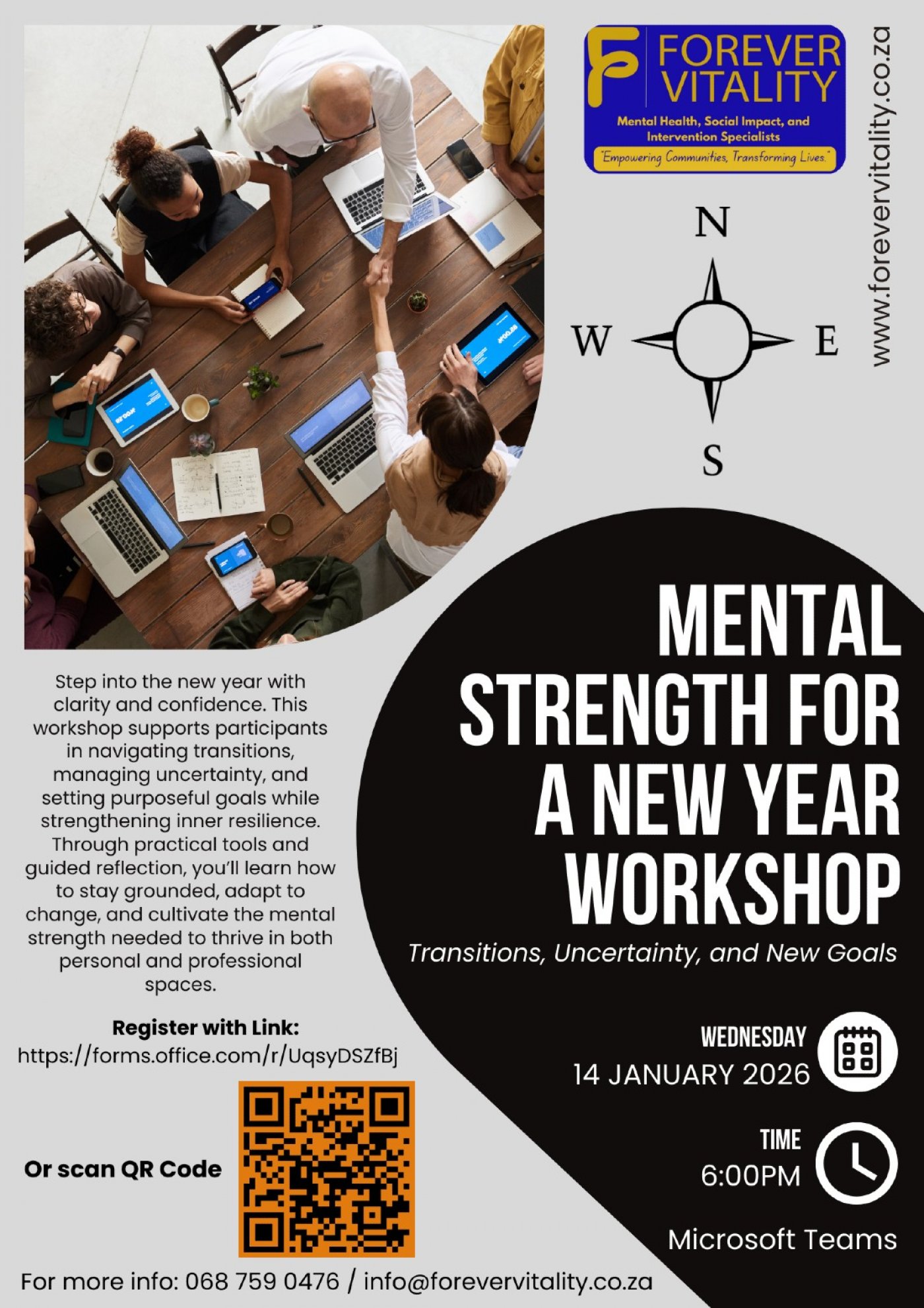 Step into the new year with clarity and confidence. This workshop supports participants in navigating transitions, managing uncertainty, and setting purposeful goals while strengthening inner resilience. Through practical tools and guided reflection, you’ll learn how to stay grounded, adapt to change, and cultivate the mental strength needed to thrive in both personal and professional spaces.