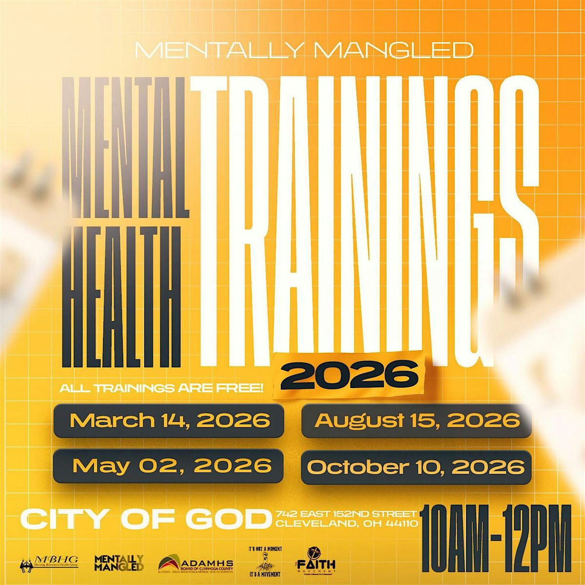 Join us as we bring awareness to the importance of mental health and faith in our community. This session will be held on 3/14/2026. We will be at City of God. To better serve you a licensed therapist will be present to answer any questions or concerns. Please join us for this powerful training. This event is FREE and open to the public.