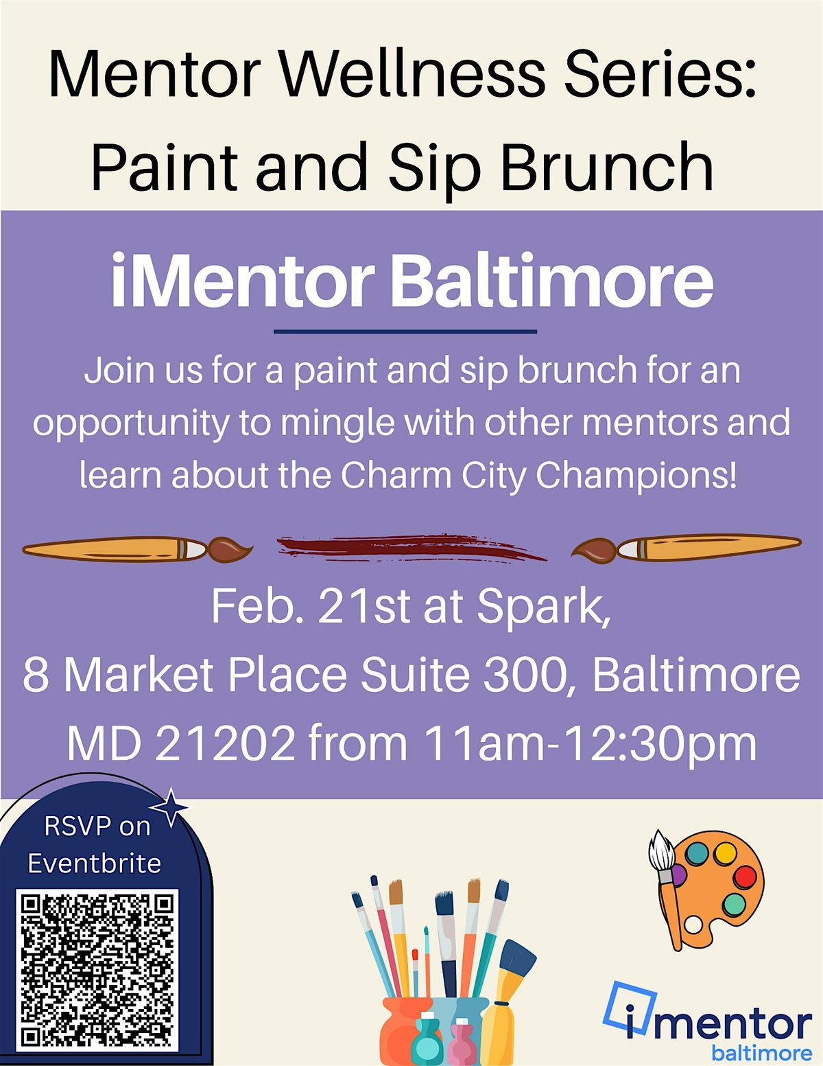 Mentors, this one’s for you. Sip, paint & brunch with us—good vibes, good food, great community. Saturday, Feb 21. Join us!