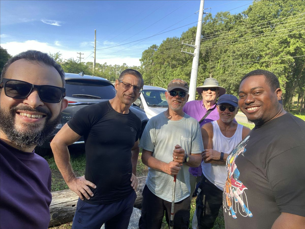 Walk and talk for one hour, once per month, with men. Leave earbuds at home to be present with other men.
