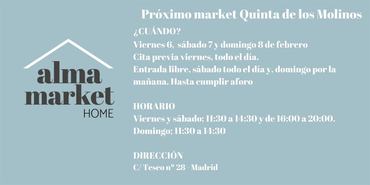 Mercadillo organizado por Alma Market Home, Quinta de los Molinos, Madrid.