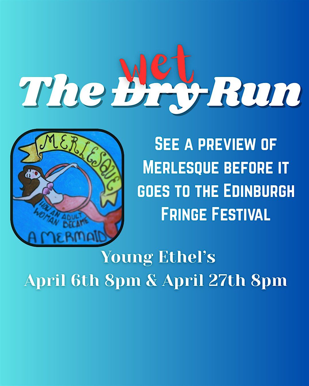 Merlesque is the true story of a statistician becoming a mermaid. When Elle's non-profit lost it's funding under Trump, she found her PhD unhelpful. When the job market's dry sometimes you need to get wet. Come see a preview of Merlesque before it goes to the 2026 Edinburgh Fringe Festival.