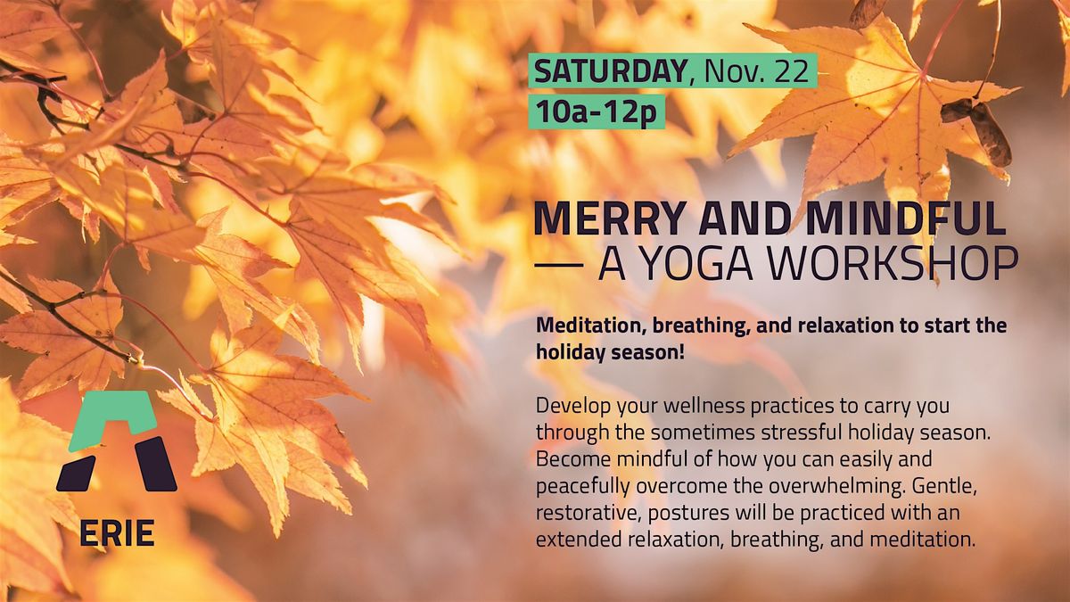Develop your wellness practices to carry you through the sometimes stressful holiday season. Become mindful of how you can easily and peacefully overcome the overwhelming. Gentle, restorative, postures will be practiced with an extended relaxation, breathing, and meditation. Bring a notebook for reflection.
