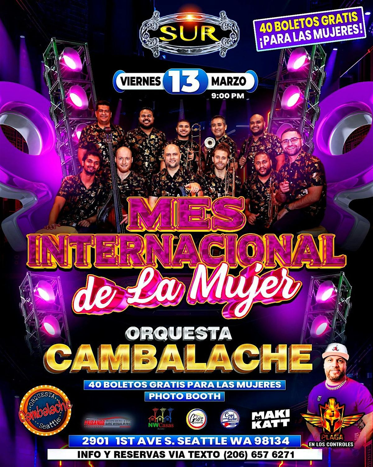 Este viernes 13 de marzo, celebramos en grande el Mes Internacional de la Mujer con una noche llena de salsa, energía con Orquesta Cambalache en VIVO en Club SUR.