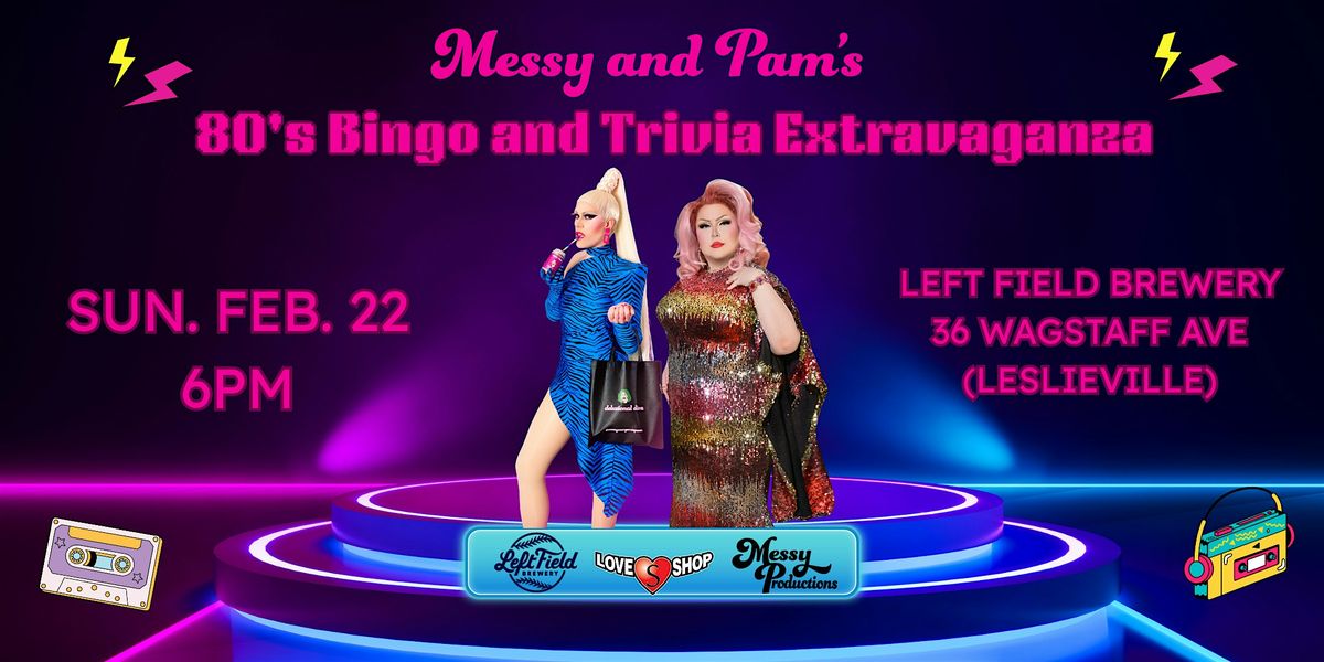 Break out the leg warmers and tease that hair—Messy & Pam’s 80’s Drag Bingo and Trivia Extravaganza is coming to Leslieville! 🎤✨