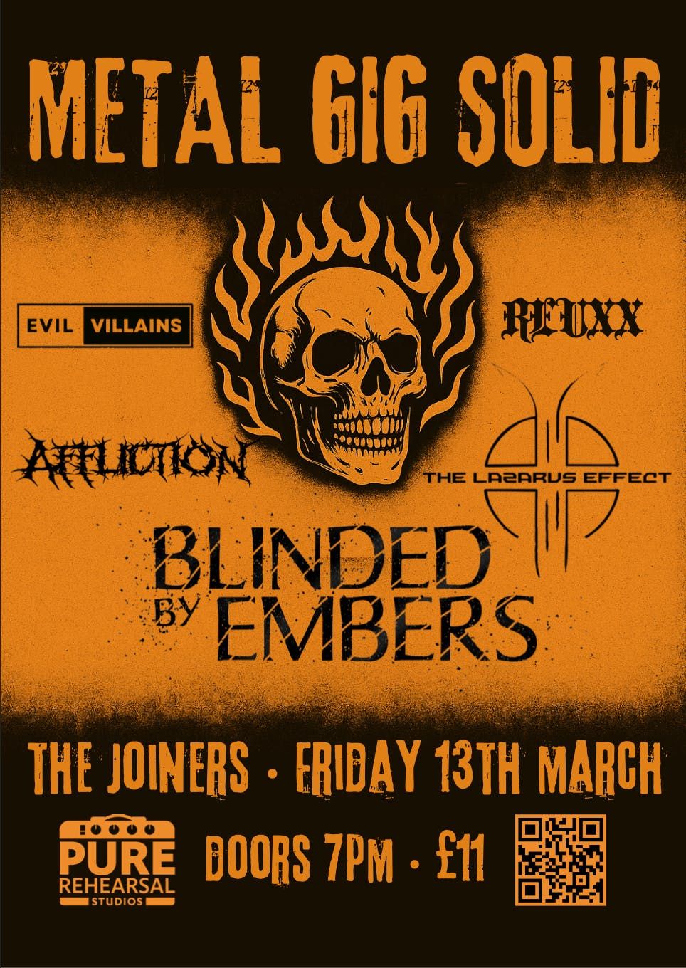 Friday the 13th. The Joiners. Five of the South’s heaviest acts under one roof. This is not a night for standing at the back.Prepare for a full-throttle metal showcase presented by Pure Rehearsal Studios featuring: