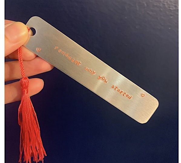 Create something meaningful and hands-on in this metal stamping workshop! Participants will design and stamp their own personalized metal bookmarks using letters, symbols, and simple design techniques. You’ll learn the basics of metal stamping and leave with a unique, functional keepsake—perfect as a gift or a special treat for yourself (and your favorite book!) No experience needed; all materials provided.
