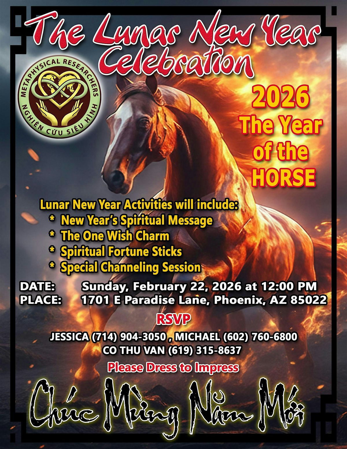 🟠Theme Color: Orange ✨ Guests are encouraged to dress in orange to honor the Fire Horse energy.