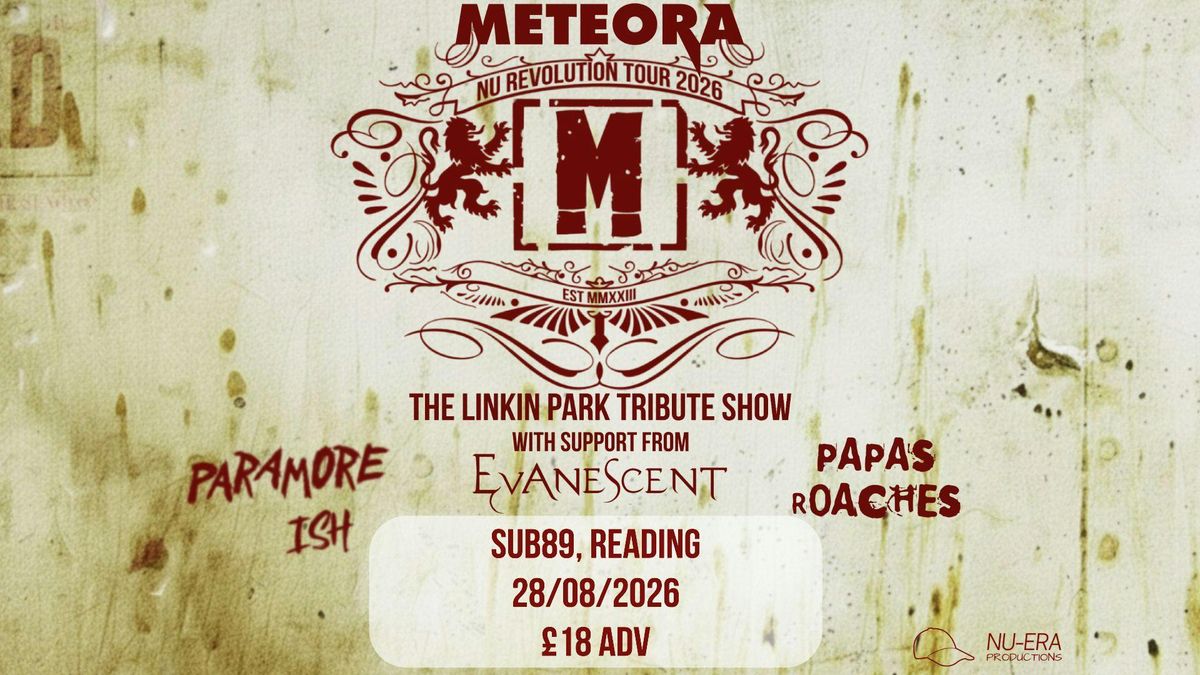 Nu-Era Productions presents Meteora, a powerhouse tribute to Linkin Park, live in Reading!After multiple sold-out shows across the country, Meteora are bringing their incredibly authentic and passionate performance to you. Get ready to relive all the massive anthems that defined a generation, delivered with the raw energy and precision that made Linkin Park iconic.