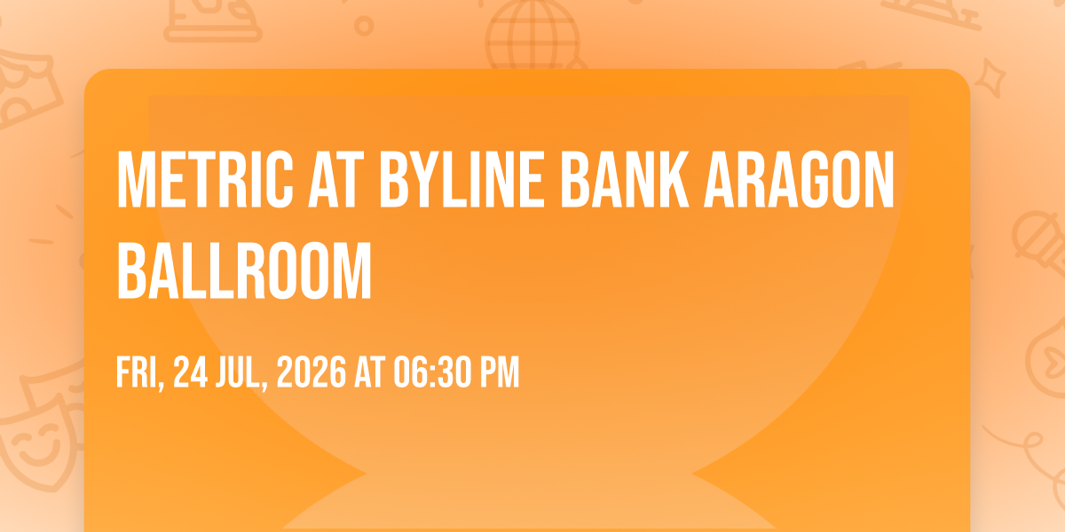 β¨ Discover the extraordinary at Metric at Byline Bank Aragon Ballroom, where magic meets reality in ways you've never imagined! ποΈ Set in Byline Bank Aragon Ballroom nestled in bustling Chicago, IL, this event promises to be a landmark occasion. π Taking place on July 24th, 2026 at 06:30 PM, it's going to create an atmosphere where every moment becomes a cherished memory. π Immerse yourself in an experience crafted with attention to every detail, designed to surprise and delight at every turn. They have worked tirelessly to ensure this event exceeds all expectations, bringing together elements of entertainment, innovation, and pure joy. π Don't miss your chance to be part of this remarkable journey!