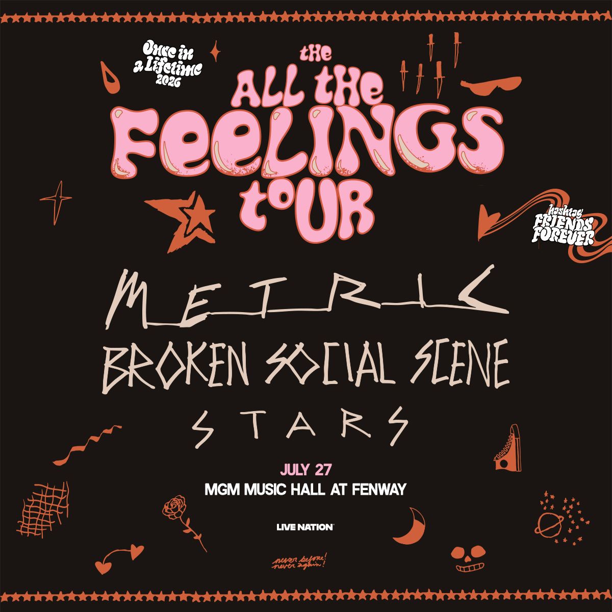 Metric at MGM Music Hall at Fenway Parkโจ Enter a world of endless possibilities at Metric, Broken Social Scene & Stars Boston Tickets, where every moment tells a story! ๐๏ธ The stunning MGM Music Hall at Fenway Park in vibrant Boston, MA transforms into a realm of wonder on July 27th, 2026 at 07:00 PM. ๐ They have crafted an experience that goes beyond the ordinary, combining elements of surprise, delight, and pure entertainment. Every detail has been thoughtfully considered to ensure your journey with us is nothing short of extraordinary. ๐ฏ Join fellow adventure seekers and memory makers in this celebration of imagination and innovation. ๐ซ Get your tickets at 56.05 EUR. ๐ Reserve your spot today and be part of something truly special!