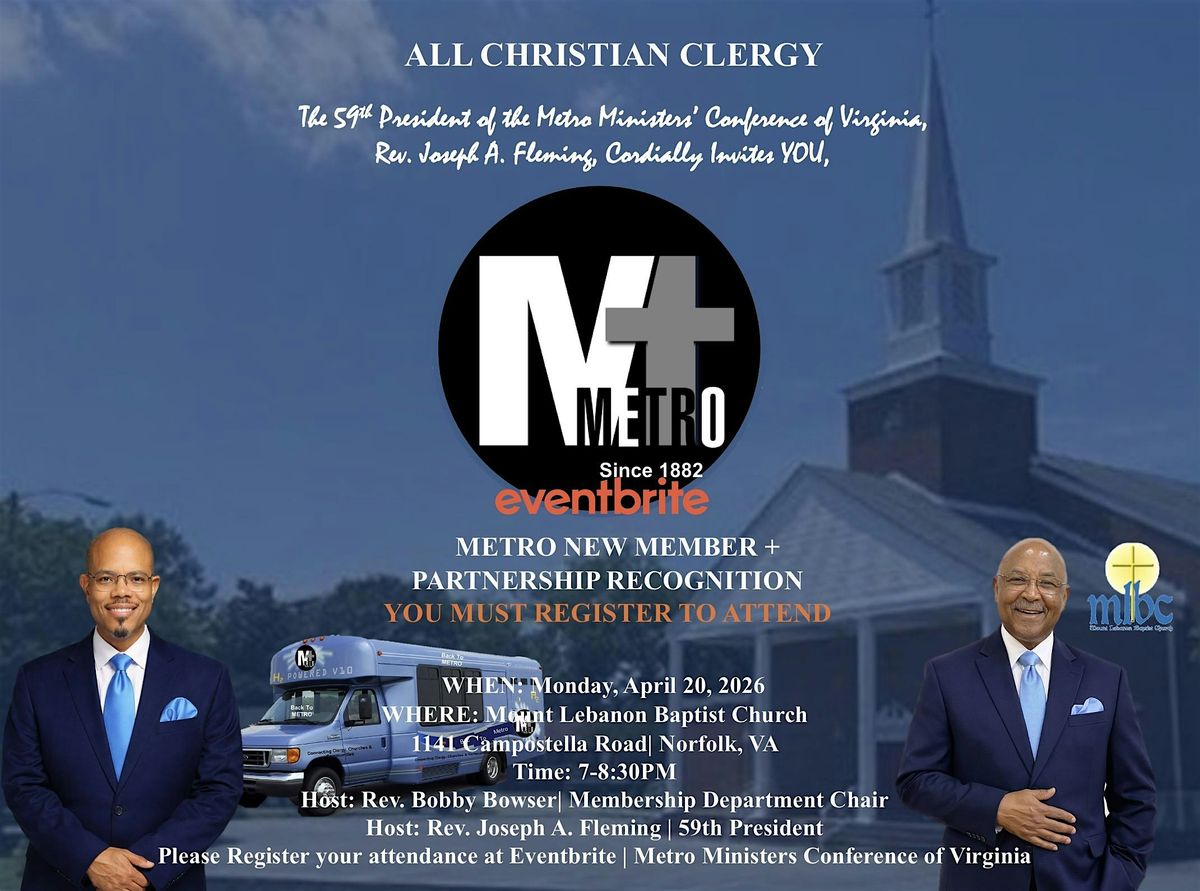 Metro Ministers' Conference of Virginia meets for its monthly meeting where New Member and Partner recognition will take place.