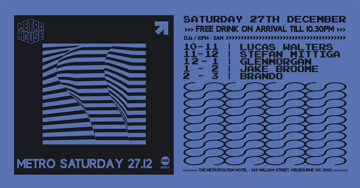 Metro Saturday 27.12Melbourne’s hottest new nightclub, showcasing up and coming DJs all night long.