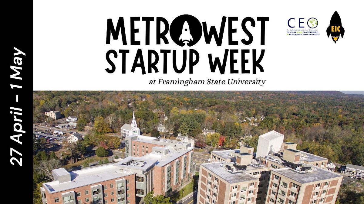 Join us for the first-ever MetroWest Startup Week at Framingham State University, organized by the Entrepreneur Innovation Center and the Collegiate Entrepreneurs' Organization (CEO) chapter at FSU! π