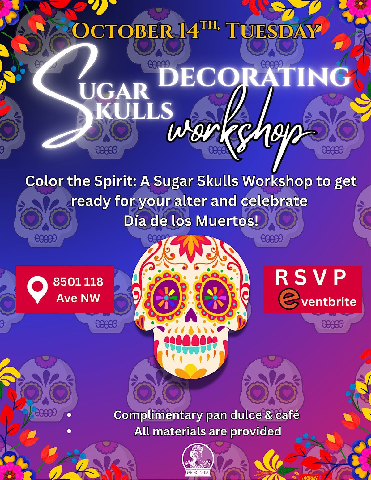 Come join us for a fun-filled day of sugar skull decoration! This in-person event will take place at La Morenita Cafe 8501 118 St NW. Get creative and design your very own sugar skull with colorful icing and decorations. Whether you're a beginner or a seasoned pro, this event is perfect for all ages. Don't miss out on this opportunity to unleash your artistic side and create a unique masterpiece. Grab your friends and family and join us for a day of creativity and fun!