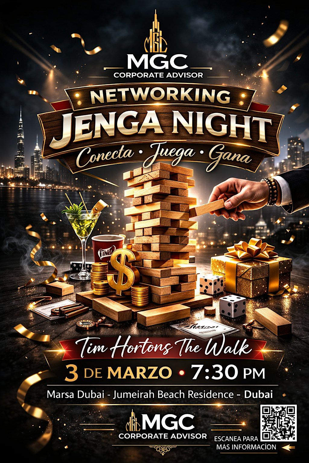 ¡Prepárate para una noche llena de diversión con sus aliados de MGC Corporate Advisors! Acompáñanos en persona a una Noche de Jenga informal donde el networking se fusiona con la emoción. Es la oportunidad perfecta para conectar, charlar y crear vínculos mientras construyes nuevas relaciones comerciales. ¡No te pierdas esta forma única de socializar y relajarte!
