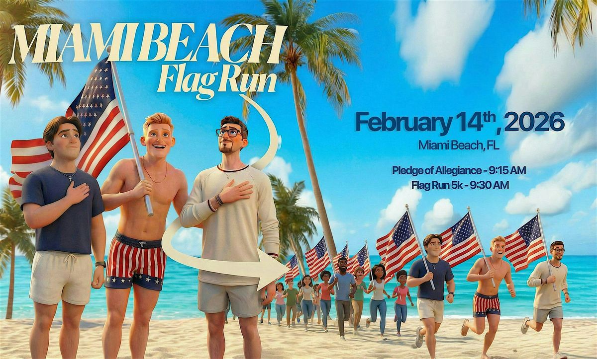 Join us on Miami Beach as we come together to unify America by running with the American Flag and saying the Pledge of Alligance. Whether you’re showing up with friends or coming solo, you’re invited! 🇺🇸
