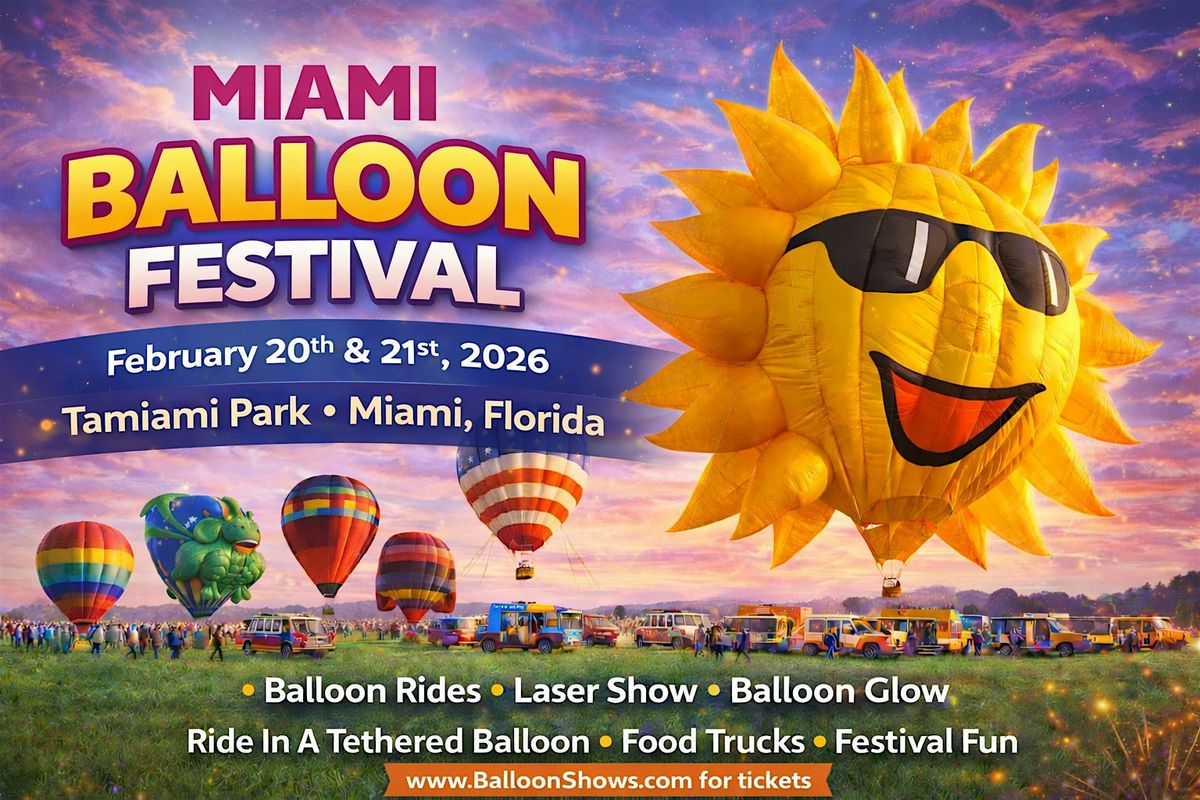 Welcome to the Miami Hot Air Balloon Festival! Get ready for an unforgettable experience at Tamiami Park on February 20, 2026 at 5:00 PM (Eastern Time). Watch the sky light up with colorful hot air balloons! Bring your family and friends for a magical evening filled with excitement and wonder. Don't miss out on this unique opportunity to witness the beauty of hot air balloons up close. See you there!