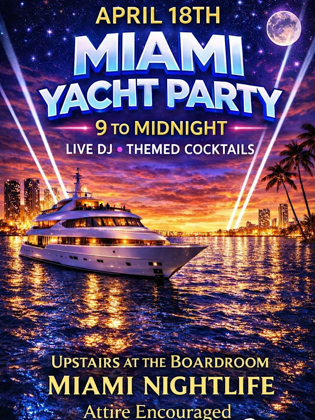 On April 18th, The Boardroom sets sail for a high-energy yacht party experience inspired by the nightlife, music, and late-night atmosphere of Miami after dark.