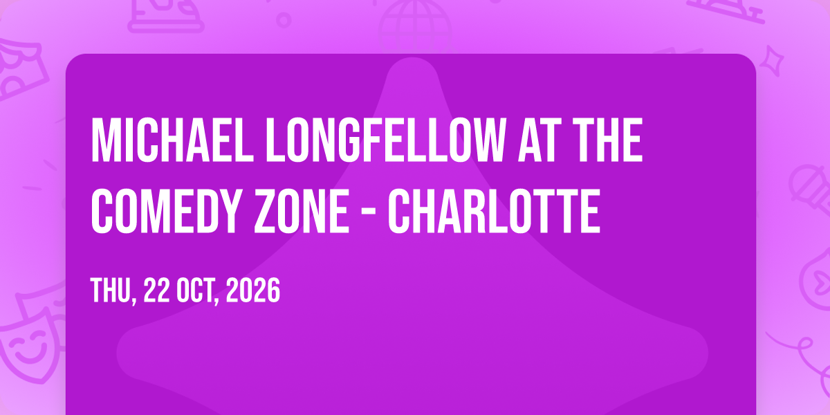 π Journey into wonder at Michael Longfellow at The Comedy Zone - Charlotte, where extraordinary experiences await around every corner! ποΈ Set against the backdrop of The Comedy Zone - Charlotte in dynamic Charlotte, NC, this event promises to exceed all expectations. π Join us on October 22nd, 2026 at 07:00 PM for a celebration that combines innovation, entertainment, and community spirit in perfect harmony. β¨ There will be an atmosphere where memories are made and stories come alive, ensuring every guest experiences something truly remarkable. π This is more than just an event; it's a journey into the extraordinary!