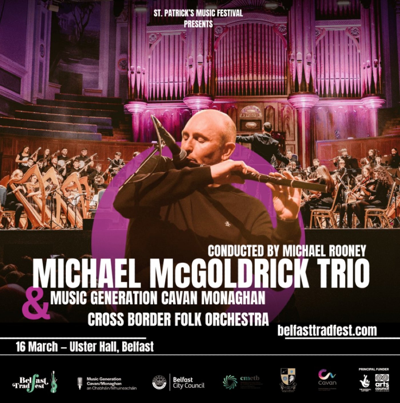 Belfast TradFest and Music Generation Cavan/Monaghan unite once again in a landmark cross-border collaboration, bringing together young musicians on a scale rarely seen in traditional music. This ambitious project breathes new life into a selection of iconic compositions by internationally renowned Manchester-born flute player and composer Michael McGoldrick. Featuring classics such as James Browne’s March, Waterman’s and Farewell to Whalley Range, newly reimagined in powerful arrangements by acclaimed Monaghan composer Michael Rooney.
