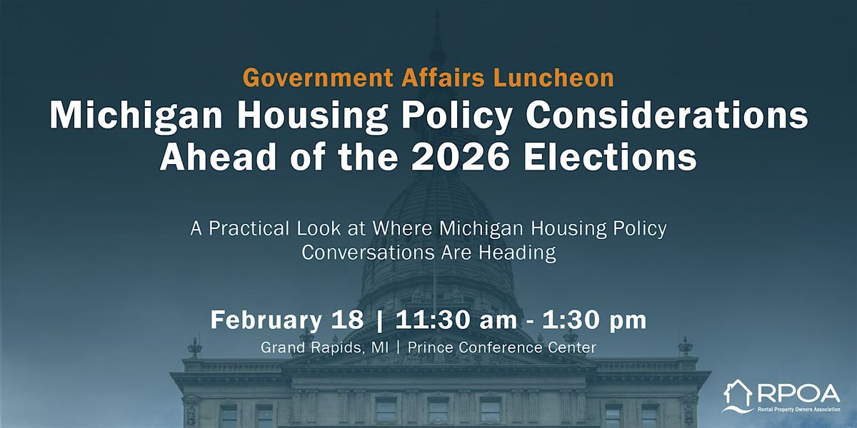 Join RPOAM Executive Director Erika Farley for a focused, in-person Government Affairs Luncheon examining how the upcoming elections may impact housing policy, regulation, and advocacy priorities across Michigan.