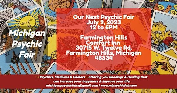 Michigan Psychic Fair - July 98, 2023, Comfort Inn Farmington Hills, MI.