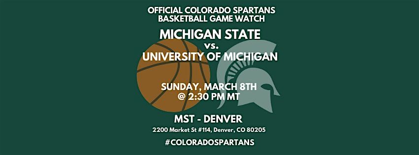 Head down to MST (Market Street Tavern) - Denver to join fellow Colorado Spartans as the Men's Basketball Team takes on U of M. Tip-off is at 2:30 PM!