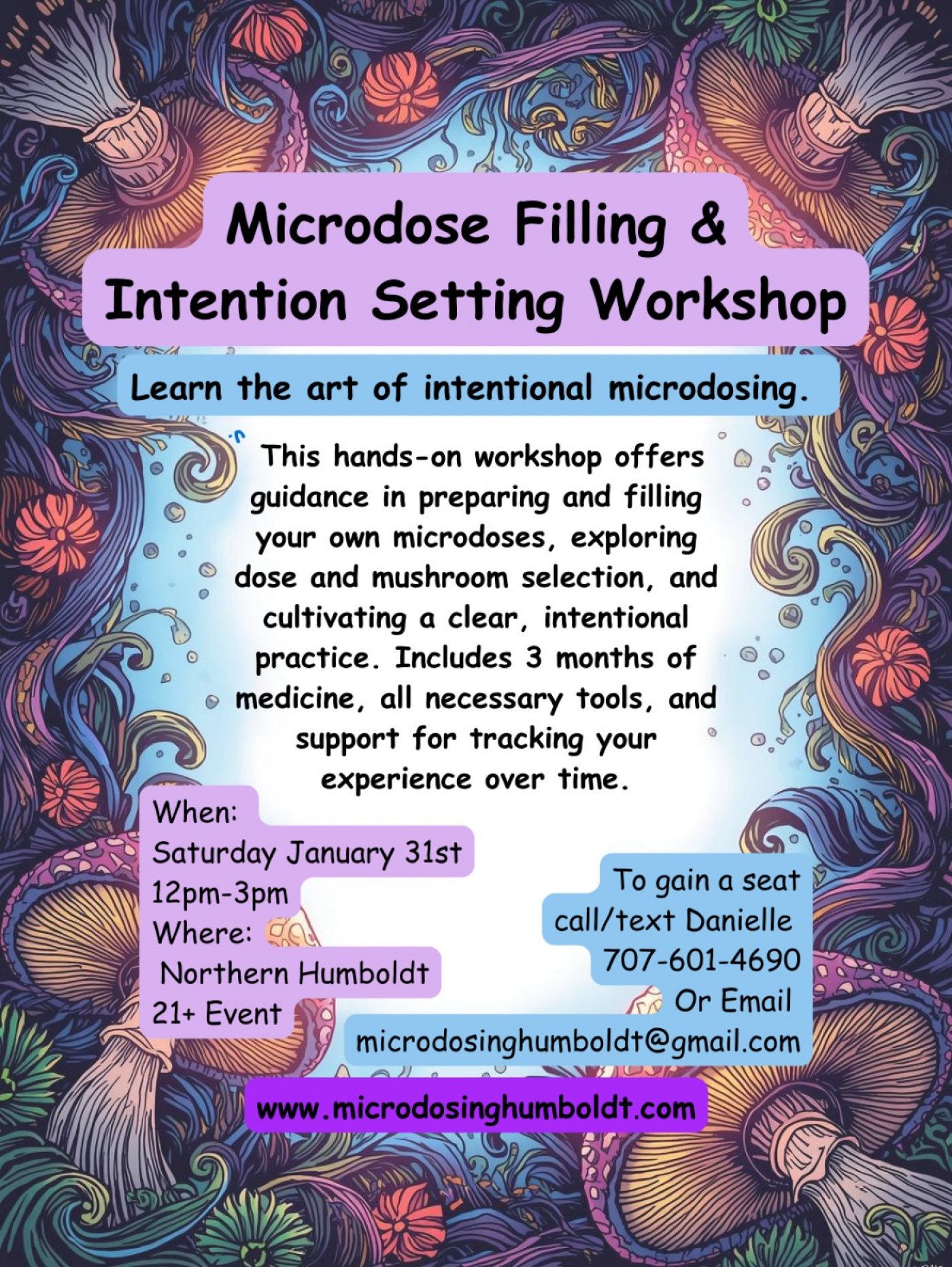 Limited to 10 participants. More info at microdosinghumboldt.com To ask questions or gain your seat off this platform please email [email protected] or text 707-601-4690