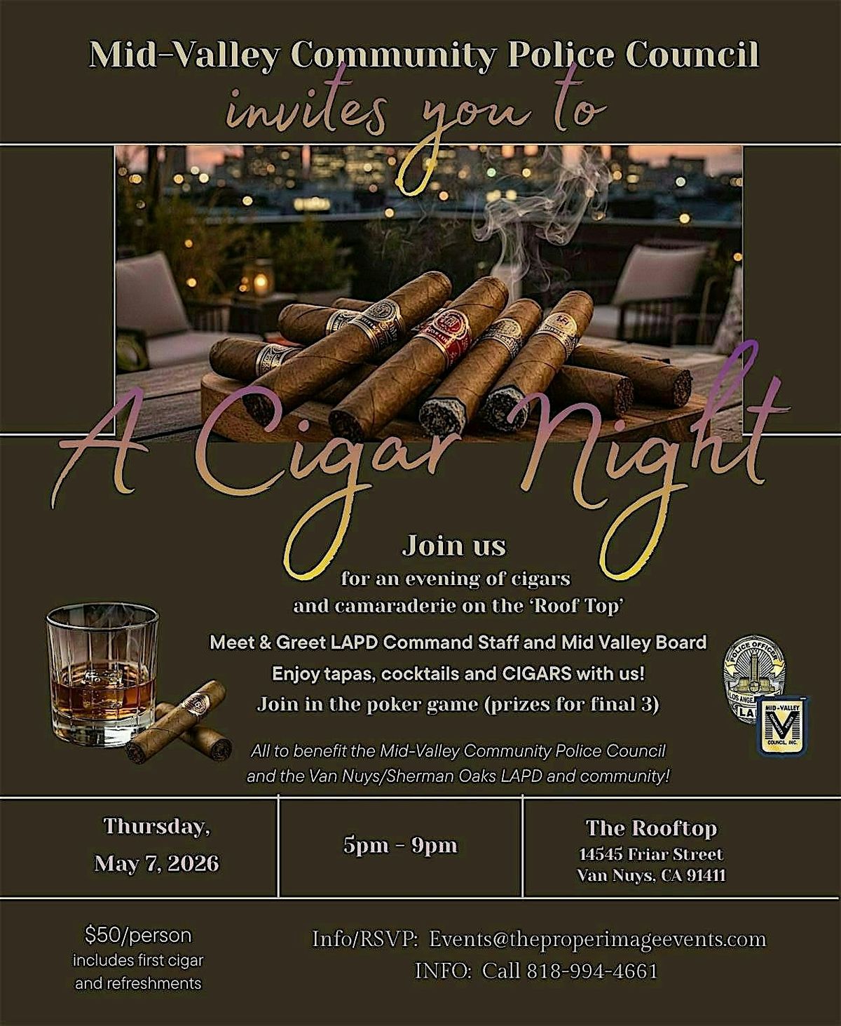 Join us for a relaxed evening at the Mid-Valley Police Council's "Cigar Night"! This is a perfect chance to hang out in person, enjoy some great cigars, and connect with the community. Bring your friends or come solo to chat, unwind, and share stories in a casual setting. Don’t miss this fun, chill event – we’re lighting up cigars and good vibes all night long!