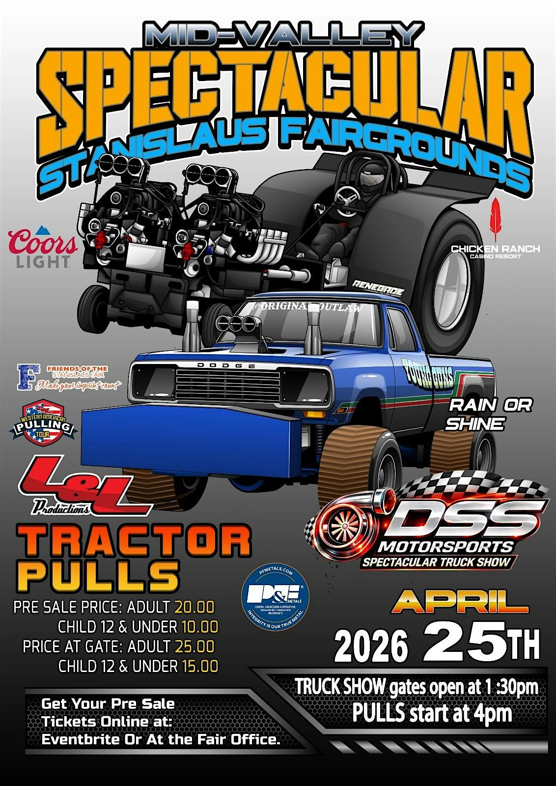 Welcome to the Mid Valley Spectacular! 2 events for 1 price this year. Tractor Pulls and The DSS Motorsports Truck Show-N-Shine!