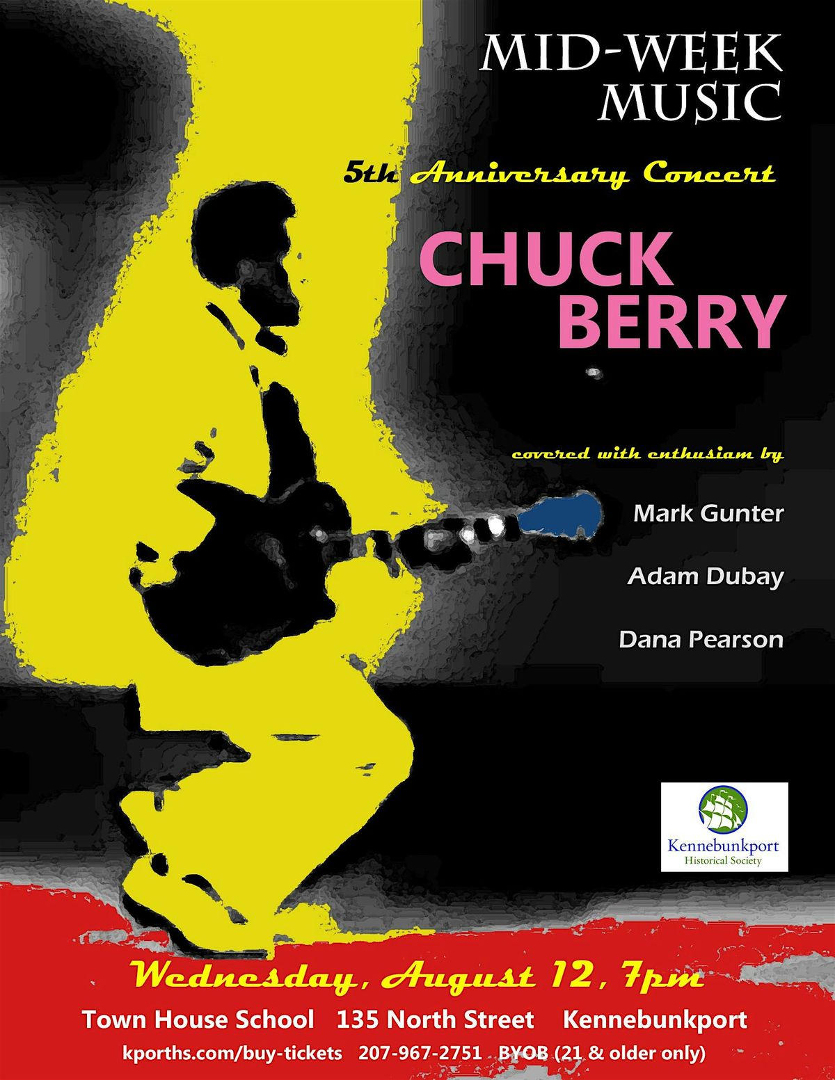 Hail! Hail! Rock and roll! To mark Mid-Week Music’s fifth anniversary, host Dana Pearson (guitar) teams up with frequent collaborator Mark Gunter (keyboard) and new guest Adam Dubay (drums) to unleash an avalanche of vintage rock and roll, courtesy of Founding Father Chuck Berry. You know ‘em, you love ‘em: “Sweet Little Sixteen,” “Roll Over Beethoven,” “No Particular Place to Go,” “Promised Land,” “Johnny B. Goode,” “You Never Can Tell,” etc. Saxophonist Mary Kennedy will sit in on a few of the numbers.
